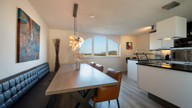 Het luxe appartement heeft een stijlvolle en gezellige woonkamer en een volledig uitgeruste open keuken. Verder zijn er in de woning drie comfortabele slaapkamers en twee luxe badkamers te vinden. Een apart toilet is tevens aanwezig. De woning heeft een heerlijk privéterras over de volle breedte, grenzend aan 1 van de slaapkamers op de parterre en een zonnig dakterras grenzend aan de woonkamer op de 1e verdieping van de woning. Dit mooie dakterras beschikt over een loungehoek, een ligbed en een grote eettafel. Ook hier geniet u van heerlijke uitzichten en de zon terwijl u zich ontspant en tot rust komt!